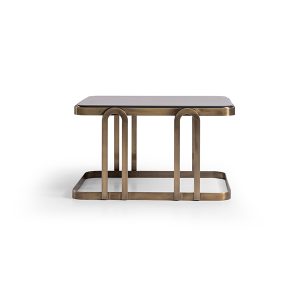 Ürünün en dikkat çekici özelliği, farklı formlardaki heykelsi ayak yapısıdır. Bronz ve gümüş tonlarının uyumlu birlikteliği, aradaki altın küre detayıyla taçlandırılarak sofistike bir görünüm elde edilmiştir. İnce ve dayanıklı üst yüzeyi, en sevdiğiniz dekoratif objeleri sergilemeniz için şık bir platform oluştururken, geometrik formları mekanınıza dinamizm katar.